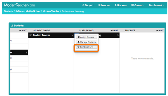 Step 6: Back in your Create & Manage view, you will see the teachers appear in the class as they self-enroll. You may need to refresh your screen to see them.